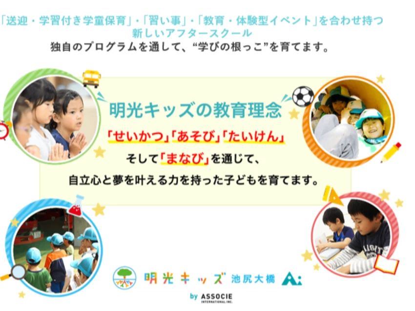 「せいかつ」「あそび」「たいけん」「まなび」を教育理念とし、自立心と夢をかなえる力を持った子どもを育てる学童スクールになります。小学生の成長に必要な4つの要素で構成されていて、それぞれの要素をバランスよく組み合わせた独自のプログラムによって、”学びの根っこ”を日々育てています。